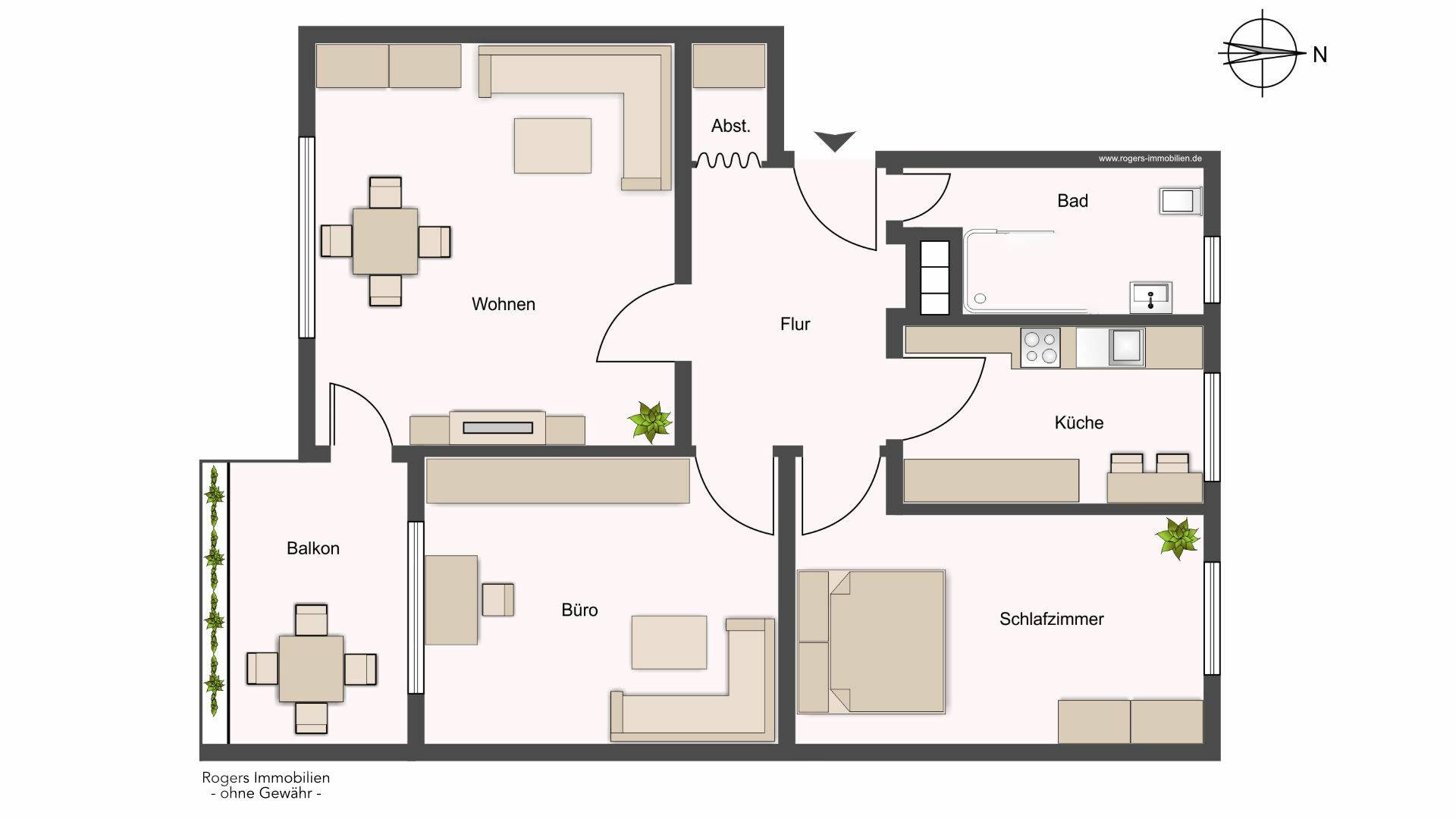 Diese Wohnung bietet Ihnen insgesamt ca. 71 m² Wohnfläche und zeichnet sich durch einen perfekten Grundriss aus:
