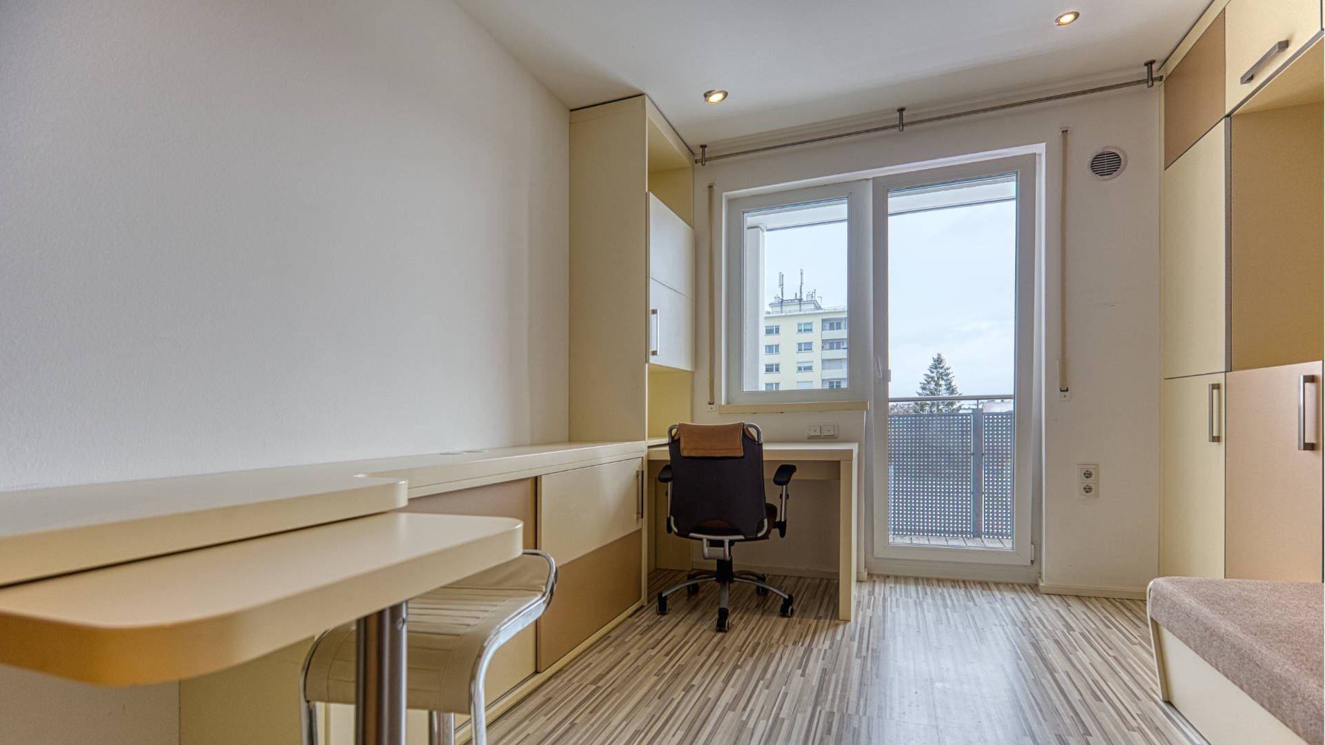 - Komplette Möblierung: Bett, Tisch, Stuhl, Schränke.